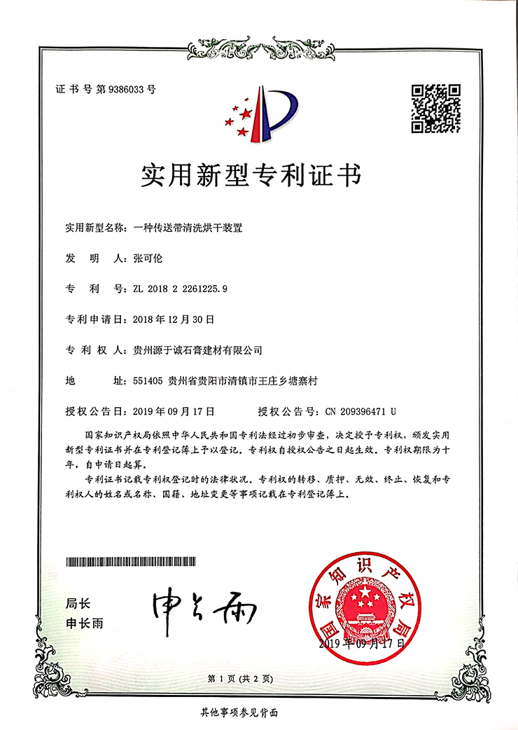 專利證書(一種有利于水平傳送及切割石音的傳送